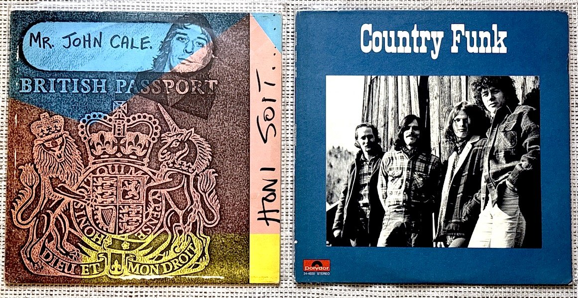 Et vu mon âge avancé, j’ai droit à la carte de bus gratuite sur toute la métropole Aix/Marseille, pratique pour aller faire un tour en ville sans me faire suer soit à trouver une place de parking, soit à sortir tout l’attirail si je veux prendre la moto. Mais ça risque de me couter plus cher en achats de vinyles ! John Cale, on ne présente plus et Country Funk, un album très sympa de folk rock psychédélique !